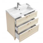 Вместительная тумба под раковину Леон 80 H от бренда AQUATON в благородной отделке бежевый дуб создана для любителей классического дизайна, но при этом предпочитающих современные материалы. Данная модель поможет максимально эффективно организовать пространство ванной комнаты благодаря трём ящикам, позволяющим разместить все необходимое. Встроенная система плавного выдвижения и доводчики обеспечивают исключительное удобство при пользовании. Корпус и фасады выполнены из высококачественной МДФ, покрытой матовой пленкой с фактурой под натуральное дерево. Классическую эстетику модели на ножках подчеркивают изящные ручки от европейского производителя.