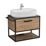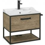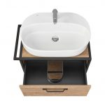 Тумба Лофт Фабрик 65 в цвете Дуб Кантри – это сочетание насыщенного древесного декора и благородства металла. Удобный вместительный ящик, снабженный направляющими плавного выдвижения, и открытая нижняя полка позволят разместить все необходимое. Для данной тумбы доступно два варианта комплектации: с раковиной Фабиа 65 из прочного литого мрамора и с накладной керамической раковиной на столешницу (столешница заказывается отдельно). Оригинальная ручка идеально сочетается с металлическими черными профилями и полотенцедержателем. Полотенцедержатель можно установить опционально по желанию клиента слева или справа.