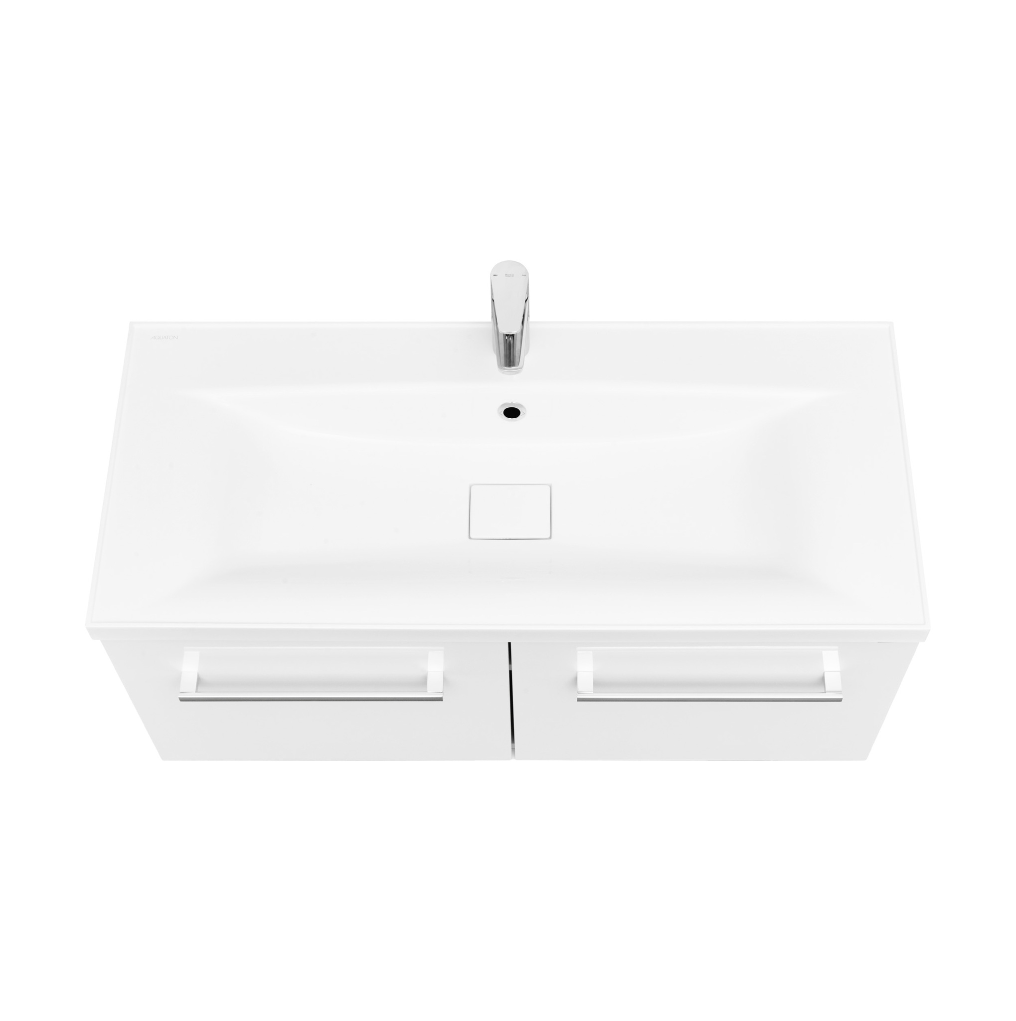 Тумба Мадрид 100 М от AQUATON в белом цвете — воплощение эстетики минимализма в чистом виде. Модель привлекает внимание простотой форм и четкостью линий. Корпус из влагостойкой ЛДСП и фасад из высококачественной МДФ покрыты полиэфирной краской ультрафиолетового отверждения с высокой степенью глянца. Тумба оснащена двумя вместительными ящиками с доводчиками и встроенной системой плавного закрывания. Для комплектации тумбы отлично подходит прямоугольная раковина AQUATON Айрис.
