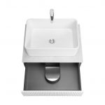 Тумба Марбл 60 функционально состоит из двух вместительных ящиков, оснащенных системой push to open, обеспечивающей надежное, комфортное и бесшумное закрывание. Верхний фасад изделия выполнен из МДФ с реечной фрезеровкой в белой матовой пленке с эффектом soft touch, а нижний фасад и корпус из ламинированной влагостойкой ДСП Слэйт. Верхний и нижний ящики позволяют содержать косметические средства в идеальном порядке. К тумбе идеально подходят несколько накладных раковин: раковина Santek Одри Soft, Roca Mila круглая и Roca Mila прямоугольная. Раковины продаются отдельно.