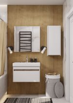 Тумба МАРТИ 70 отличается вместительностью и удобством в использовании: при желании в ящике можно организовать хранение не только шампуней и кремов, но и, например, полотенец. При этом тумба МАРТИ смотрится интересно благодаря выпилу на фасаде, который позволяет открывать тумбу за фасад: в углублении видна контрастная вставка в древесной отделке. Эта акцентная деталь придает модели графичность и позволяет подчеркнуть правильные пропорции тумбы. Корпус и боковые стенки изготовлены из влагостойкой ламинированной ДСП, окрашенной в белый цвет специальной краской ультрафиолетового отверждения для защиты мебели от влаги в условиях ванной комнаты. Декоративная вставка в цвете дуб эндгрейн.