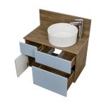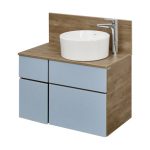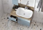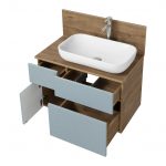 Мишель — это новая коллекция AQUATON для влюбленных в цвет и дизайн! Насыщенный оттенок фьорд пленки на фасадах с эффектом perfect touch в сочетании с натуральным декором корпуса дуб рустикальный с самого утра поднимет настроение своим обладателям и обеспечит позитивный настрой. Тумба Мишель 80 очень функциональна: слева располагается небольшой выдвижной ящик, идеально подходящий для хранения мелочей, под которым находится отделение со створкой, а справа у тумбы расположены два вместительных ящика полного выдвижения, снабженных доводчиками. Все ящики и створка открываются с помощью системы push-to-open.