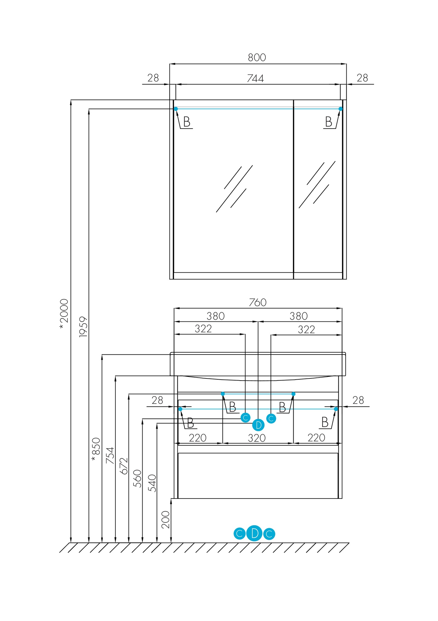 Высота тумбы с раковиной +-5мм(если нет опор)660 мм