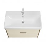 Корпус тумбы Оливия изготовлен из влагостойкой ламинированной ДСП в белой матовой покраске, а фасады ящиков в пленке от европейского производителя надежно защитят мебель от воздействия влаги в условиях ванной комнаты. Ящики установлены на направляющие полного выдвижения с доводчиками, что обеспечит легкий доступ ко всем предметам, которые хранятся в ящиках. Корпус и внутренние детали ящиков выполнены в единой цветовой гамме. Необычный вырез на фасадах создает имитацию ручки: оригинальный дизайн тумбы без выступающих деталей и комфортное использование. Размер ручки 18 см. К тумбе отлично подходит удобная современная керамическая раковина Адриана от бренда Santek.