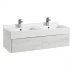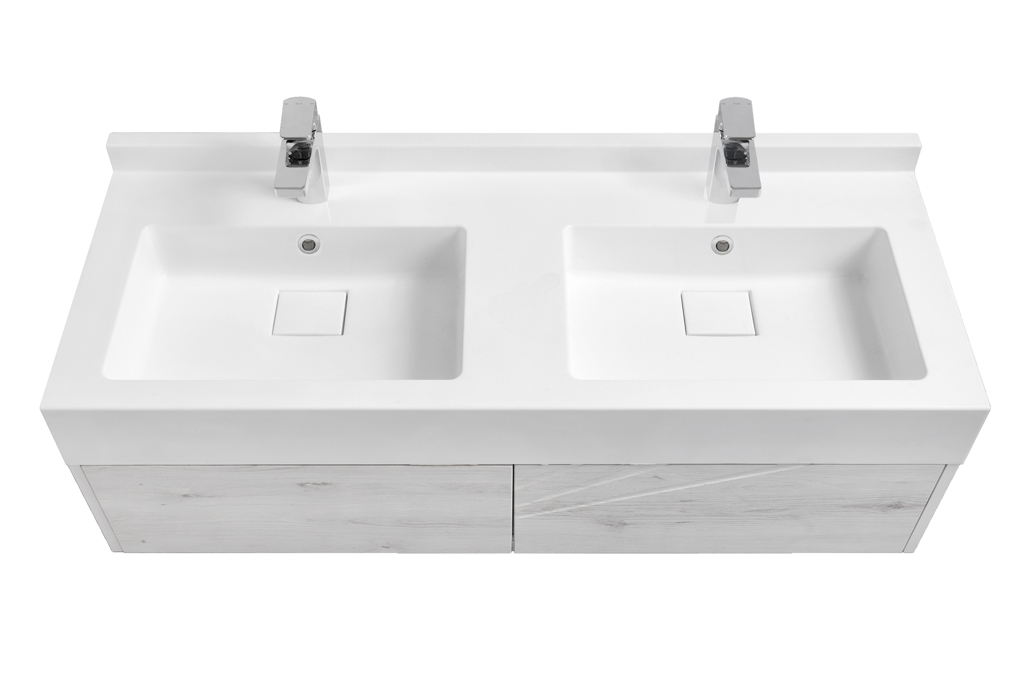 Тумба Сакура шириной 120 см снабжена двумя ящиками полного выдвижения, установленными на бесшумные направляющие скрытого монтажа, оснащенными системой push-to-open. В ящиках предусмотрены антискользящие коврики, препятствующие перемещению содержимого. Корпус тумбы выполнен из влагостойкой ЛДСП, окрашенной в белоснежный цвет с высокой степенью глянца полиэфирной краской ультрафиолетового отверждения. Фасады тумбы выполнены из высококачественной МДФ в пленке в древесной текстуре ольха наварра (производство Германия). Изящная фрезеровка на фасаде, напоминающая ветви дерева, придает особое очарование изделию. Удобная раковина Сакура из литого мрамора с крылом чуть ниже уровня чаши позволяет функционально использовать пространство для хранения принадлежностей для ванной комнаты. Также тумба шириной 120 см может на выбор комплектоваться раковиной Сакура с двумя чашами, что позволит использовать ванную комнату двум членам семьи одновременно.