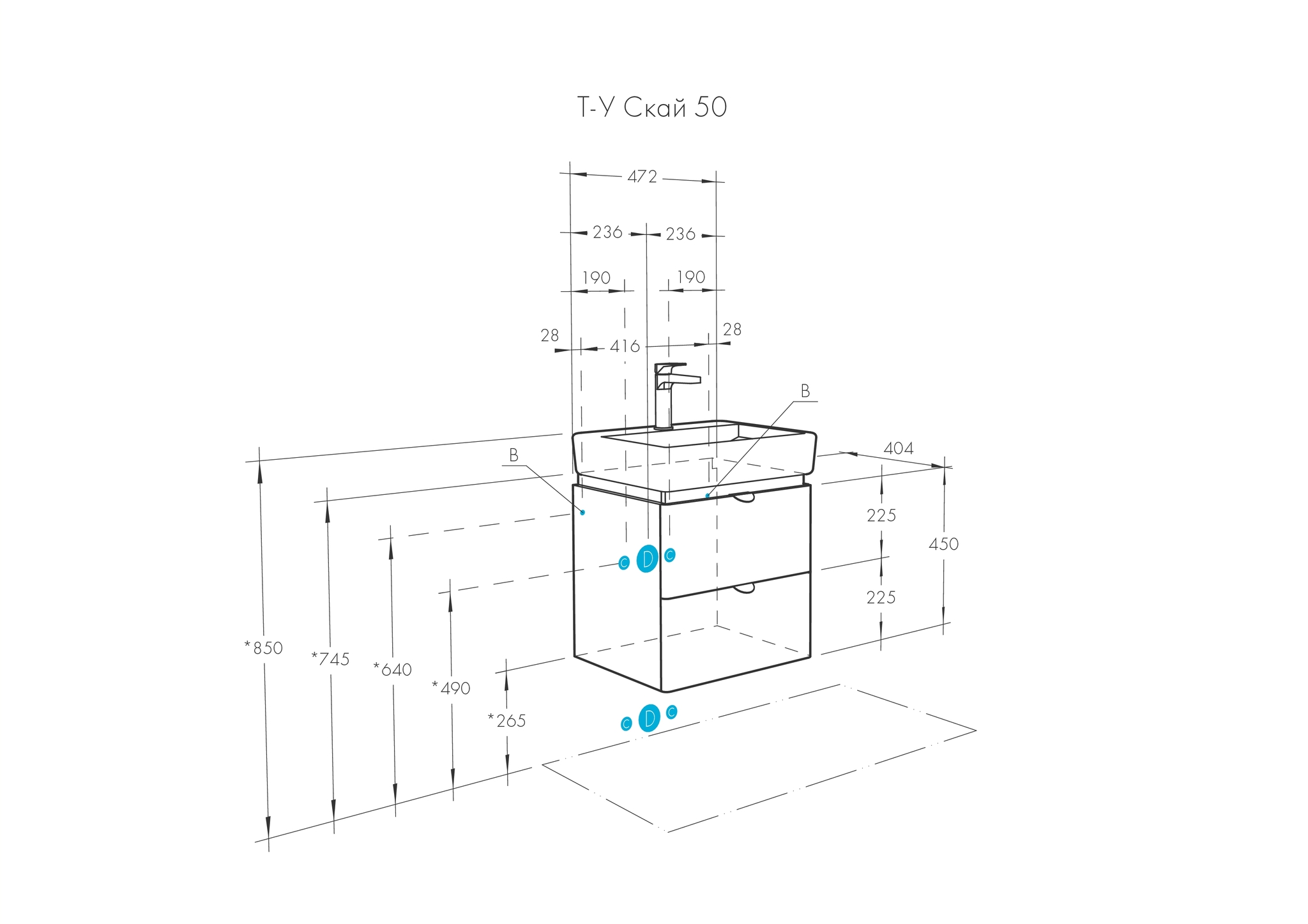 Высота тумбы с раковиной +-5мм(если нет опор)585 мм