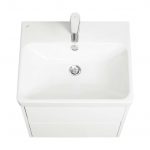 Тумба Сканди 55 выполнена в популярном минималистичном скандинавском стиле. Корпус тумбы выполнен из влагостойкой ЛДСП в белой матовой покраске, а фасады в белой глянцевой покраске. Конструктивно тумба состоит из 2 вместительных ящиков, установленных на направляющие с интегрированной системой push-to-open для комфортного использования. На тумбе нет выступающих деталей и фурнитуры, открытие ящиков реализовано нажатием на фасад. Тумба комплектуется белоснежной раковиной Адриана от бренда Santek. Раковина приобретается отдельно.