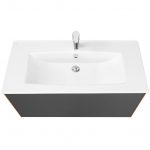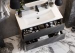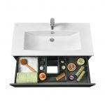 Тумба Сохо 100 функционально состоит из двух вместительных ящиков, оснащенных системой push to open, обеспечивающей надежное, комфортное и бесшумное закрывание. Фасады изделия выполнены из МДФ в пленке графит с эффектом soft touch, корпус из ламинированной влагостойкой ДСП Дуб веллингтон. Верхний и нижний ящики оснащены системой организации пространства, которая позволяет содержать косметические средства в идеальном порядке. Дополняет тумбу стильная раковина Элина от бренда Santek с удобной чашей. Раковина приобретается отдельно. Все внутренние детали тумбы выполнены в тон фасадов — цвета антрацит.