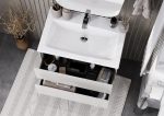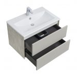 Тумба Сохо 75 функционально состоит из двух вместительных ящиков, оснащенных системой push to open, обеспечивающей надежное, комфортное и бесшумное закрывание. Фасады изделия выполнены из МДФ в пленке в цвете галька серая, корпус из ламинированной влагостойкой ДСП слэйт. Верхний и нижний ящики оснащены системой организации пространства, которая позволяет содержать косметические средства в идеальном порядке. Все внутренние детали тумбы выполнены в цвете антрацит.