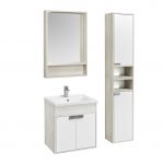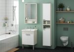 Тумба Флай 60 в современном стиле сочетает в себе два цвета — белоснежный глянец и трендовый декор дуб крафт. Выполненная из влагостойкой ламинированной плиты тумба обладает простым и удобным функционалом: за распашными фасадами-створками находится вместительное отделение с регулируемой по высоте полочкой. Фасады открываются с помощью изящной и оригинальной ручки от европейского производителя (Испания), петли снабжены доводчиками. Тумба комплектуется белоснежной прямоугольной керамической раковиной Миранда бренда Santek. Раковина приобретается отдельно. Фасады тумбы окрашены полиэфирной краской ультрафиолетового отверждения. Такой способ окрашивания обеспечивает изделию привлекательный внешний вид, а также износостойкость и долговечность.