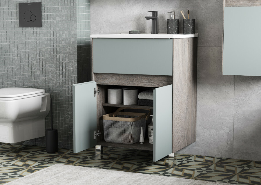 Коллекция мебели ФОРЕСТ вдохновлена природными мотивами и выполнена в естественных оттенках. Минималистичный сдержанный дизайн позволяет органично вписать ее в большинство современных интерьеров. В тумбе максимально удобная эргономика: функциональный ящик и вместительно пространство за фасадами-створками. В ящике организована система хранения для удобного и комфортного использования: две регулируемые планки. Верхняя часть фасада-створки обработана под ручку L-профиль, за створками скрываются две полочки, одна из которых регулируемая, а также немного утоплена внутрь для комфортного хранения высоких предметов. Тумбы коллекции ФОРЕСТ могут устанавливаться как на опоры, так и в подвесном варианте: в комплект входят две регулируемые опоры.