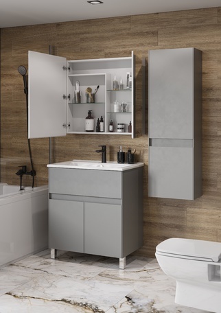 Коллекция мебели ФОРЕСТ вдохновлена природными мотивами и выполнена в естественных оттенках. Минималистичный сдержанный дизайн позволяет органично вписать ее в большинство современных интерьеров. В тумбе максимально удобная эргономика: функциональный ящик и вместительно пространство за фасадами-створками. В ящике организована система хранения для удобного и комфортного использования: две регулируемые планки. Верхняя часть фасада-створки обработана под ручку L-профиль, за створками скрываются две полочки, одна из которых регулируемая, а также немного утоплена внутрь для комфортного хранения высоких предметов. Тумбы коллекции ФОРЕСТ могут устанавливаться как на опоры, так и в подвесном варианте: в комплект входят две регулируемые опоры.