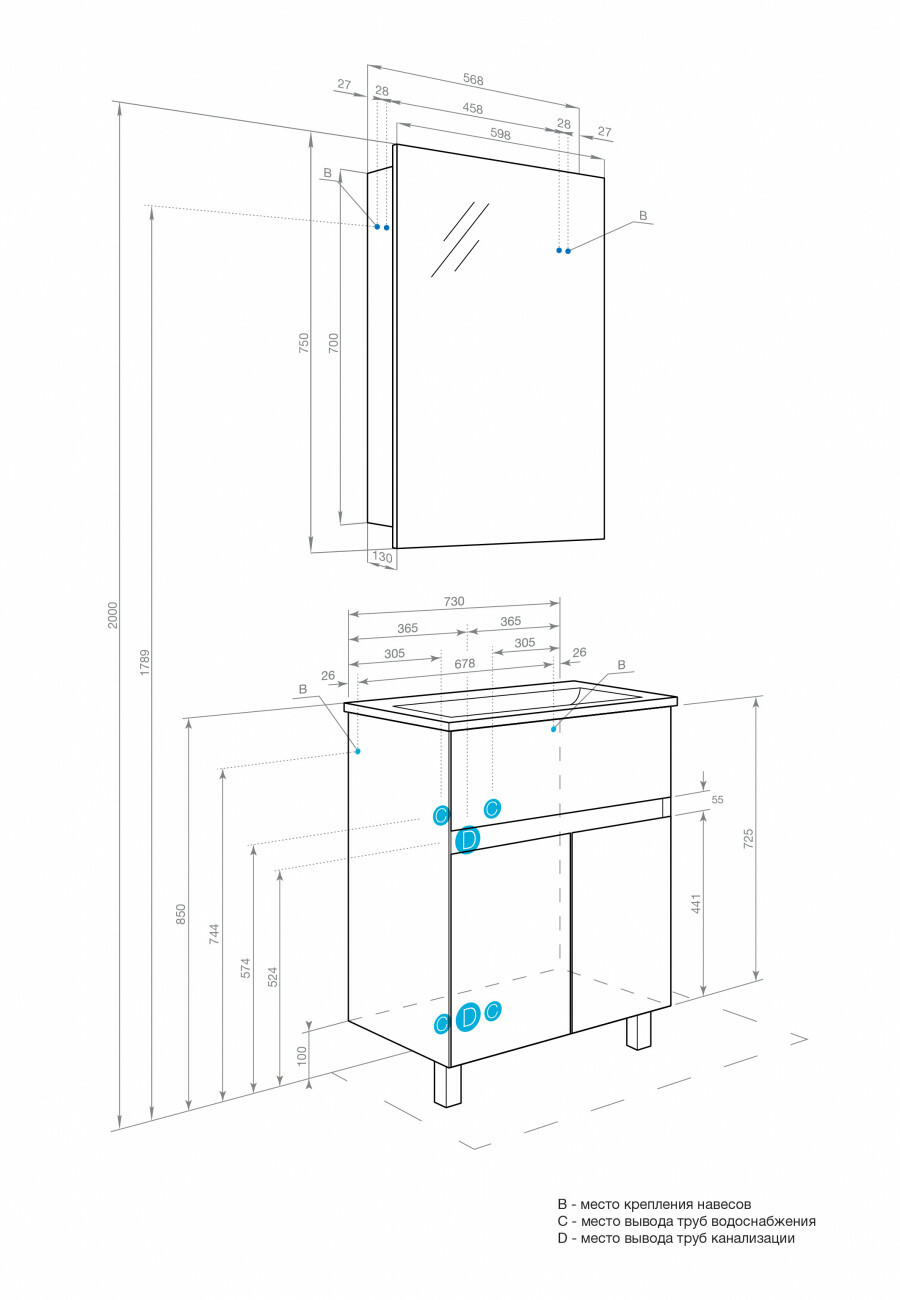 Высота тумбы с раковиной +-5мм(если нет опор)750 мм