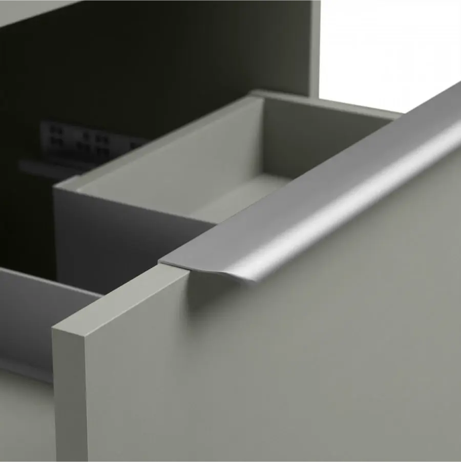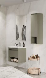 Тумбы для ванной комнаты коллекции Хоуп — это идеальное сочетание простоты линий и функциональности, которое преобразит ваше пространство. Каждая тумба в этой коллекции создана с вниманием к деталям и стремлением к гармонии, что делает их не только практичными, но и эстетически привлекательными. Элегантные линии и современный дизайн подчеркивают утонченность интерьера, а использование влагостойкой ЛДСП гарантирует долговечность и простоту в уходе. Удобная ручка добавляет нотку изысканности, а открытая ниша предоставляет возможность организовать пространство так, как вам удобно — будь то размещение любимых аксессуаров или необходимых принадлежностей. Корпус и фасад выполнены из влагостойкой ЛДСП в светло-зеленом цвете. Ручка в данной коллекции в трендовом цвете gun metal (вороненый металл). Изготовленная из алюминия, она не только привлекает внимание своим эстетичным дизайном, но и имеет надежный и удобный хват. Тумбы коллекции Хоуп за счет своих цветовых решений в белом, древесном и светло-зеленом исполнении идеально впишутся в любой стиль ванной комнаты, от минимализма до классики, создавая атмосферу уюта и комфорта. Они не только помогут поддерживать порядок, но и станут ярким акцентом вашего интерьера. Направляющие полного выдвижения скрытого монтажа с доводчиком позволят использовать весь функционал ящиков бесшумно и с комфортом, а открытая ниша дает возможность убирать туда необходимы принадлежности, чтобы они всегда были под рукой. Высота полезного пространства — 160 мм.