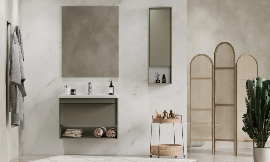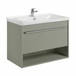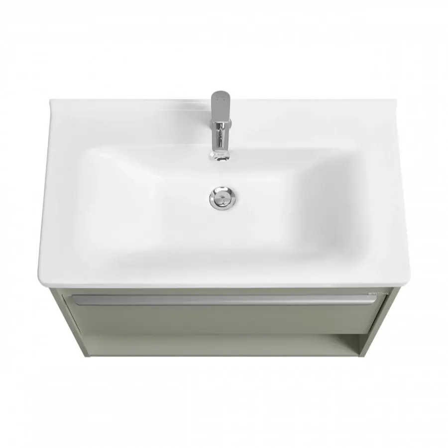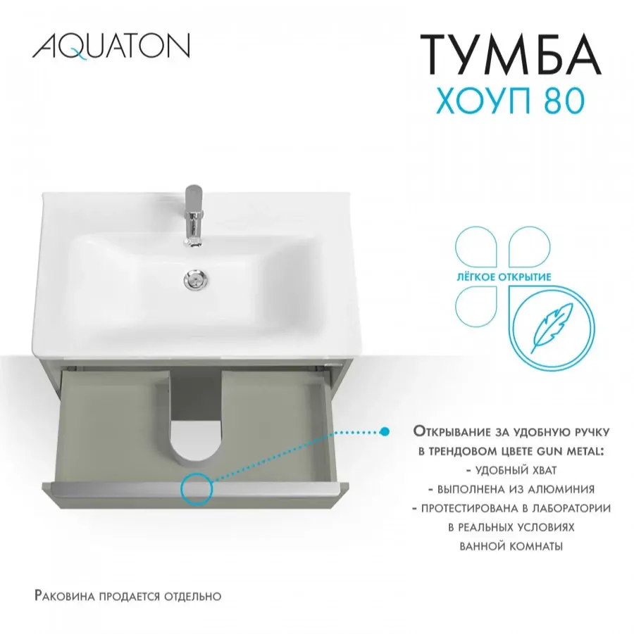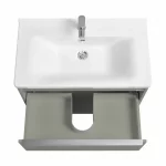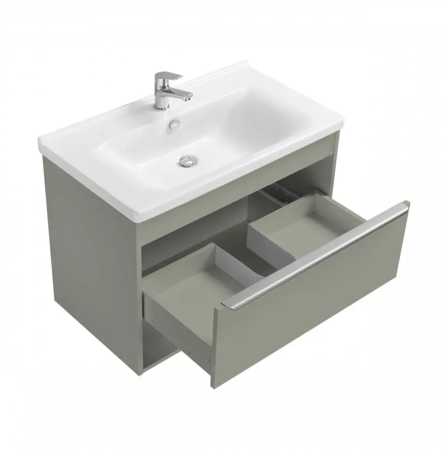 Тумбы для ванной комнаты коллекции Хоуп — это идеальное сочетание простоты линий и функциональности, которое преобразит ваше пространство. Каждая тумба в этой коллекции создана с вниманием к деталям и стремлением к гармонии, что делает их не только практичными, но и эстетически привлекательными. Элегантные линии и современный дизайн подчеркивают утонченность интерьера, а использование влагостойкой ЛДСП гарантирует долговечность и простоту в уходе. Удобная ручка добавляет нотку изысканности, а открытая ниша предоставляет возможность организовать пространство так, как вам удобно — будь то размещение любимых аксессуаров или необходимых принадлежностей. Корпус и фасад выполнены из влагостойкой ЛДСП в светло-зеленом цвете. Ручка в данной коллекции в трендовом цвете gun metal (вороненый металл). Изготовленная из алюминия, она не только привлекает внимание своим эстетичным дизайном, но и имеет надежный и удобный хват. Тумбы коллекции Хоуп за счет своих цветовых решений в белом, древесном и светло-зеленом исполнении идеально впишутся в любой стиль ванной комнаты, от минимализма до классики, создавая атмосферу уюта и комфорта. Они не только помогут поддерживать порядок, но и станут ярким акцентом вашего интерьера. Направляющие полного выдвижения скрытого монтажа с доводчиком позволят использовать весь функционал ящиков бесшумно и с комфортом, а открытая ниша дает возможность убирать туда необходимы принадлежности, чтобы они всегда были под рукой. Высота полезного пространства — 160 мм.