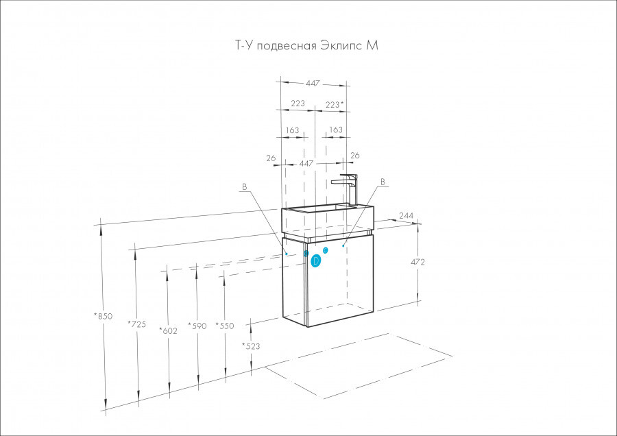 Высота тумбы с раковиной +-5мм(если нет опор)598 мм
