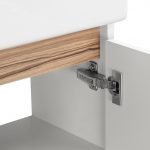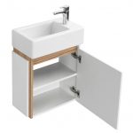 Правосторонняя тумба Эклипс М от AQUATON позволит грамотно организовать небольшой санузел или ванную комнату. Корпус у данной модели комбинированный и изготовлен из текстурированной ДСП в эффектной светлой отделке эбони и из влагостойкой ЛДСП, покрытой глянцевой белой краской. Фасад, выполненный из МДФ, также окрашен в белый глянец. Минималистичный дизайн тумбы подчеркивает отсутствие лицевой фурнитуры. Плавное закрывание распашного фасада-створки обеспечивают петли с доводчиком. Для комплектации тумбы Эклипс М подойдет компактная, но при этом глубокая прямоугольная керамическая раковина Santek Эрис 46. Раковина приобретается отдельно. Расположение смесителя на раковине с правой стороны, петли на тумбе с правой стороны.