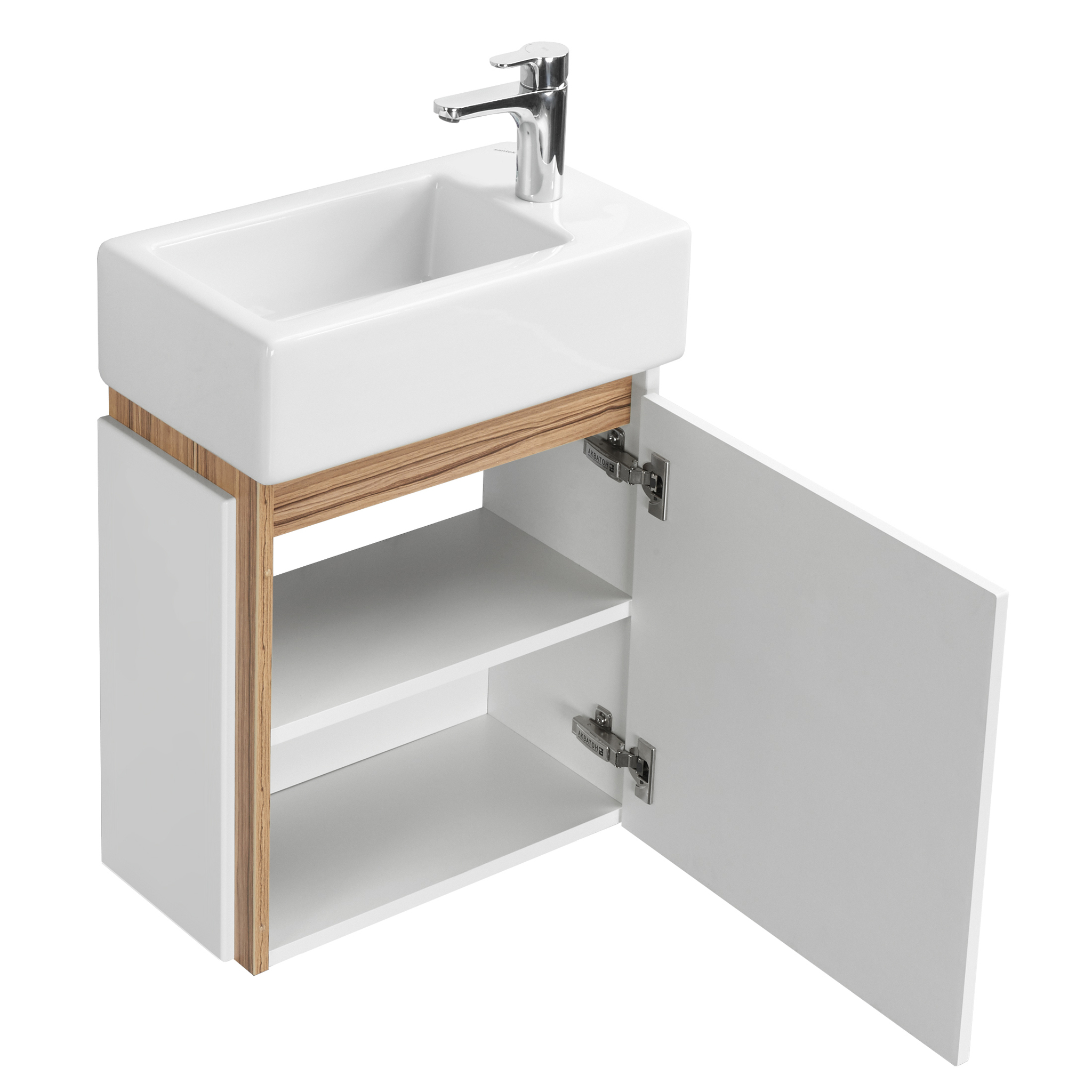 Комплект поставки: • Тумба • Раковина с декоративной накладкой на отверстие перелива в цвете хром, 1 отверстие под смеситель,