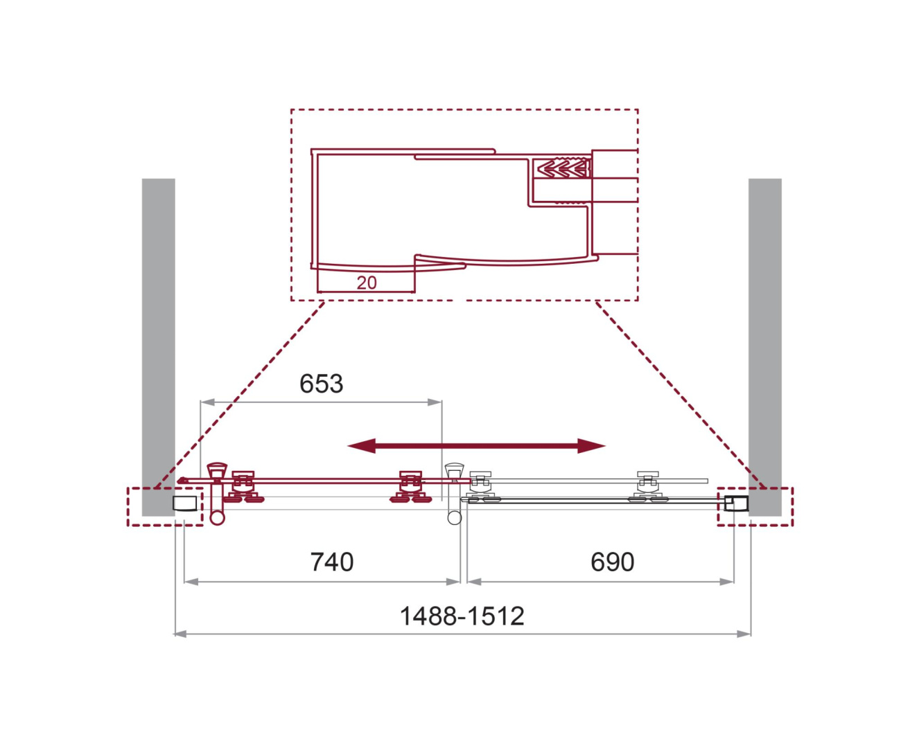 Акватек — Душевая дверь двухэлементная, раздвижная 200х120, оружейная сталь
