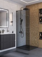 ● Широкий диапазон размеров от 60 до 110 см с шагом в 10 см позволяет найти идеальное решение для ванных комнат любого метража. Высота перегородок составляет целых 200 см — как в премиальных коллекциях.