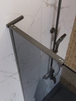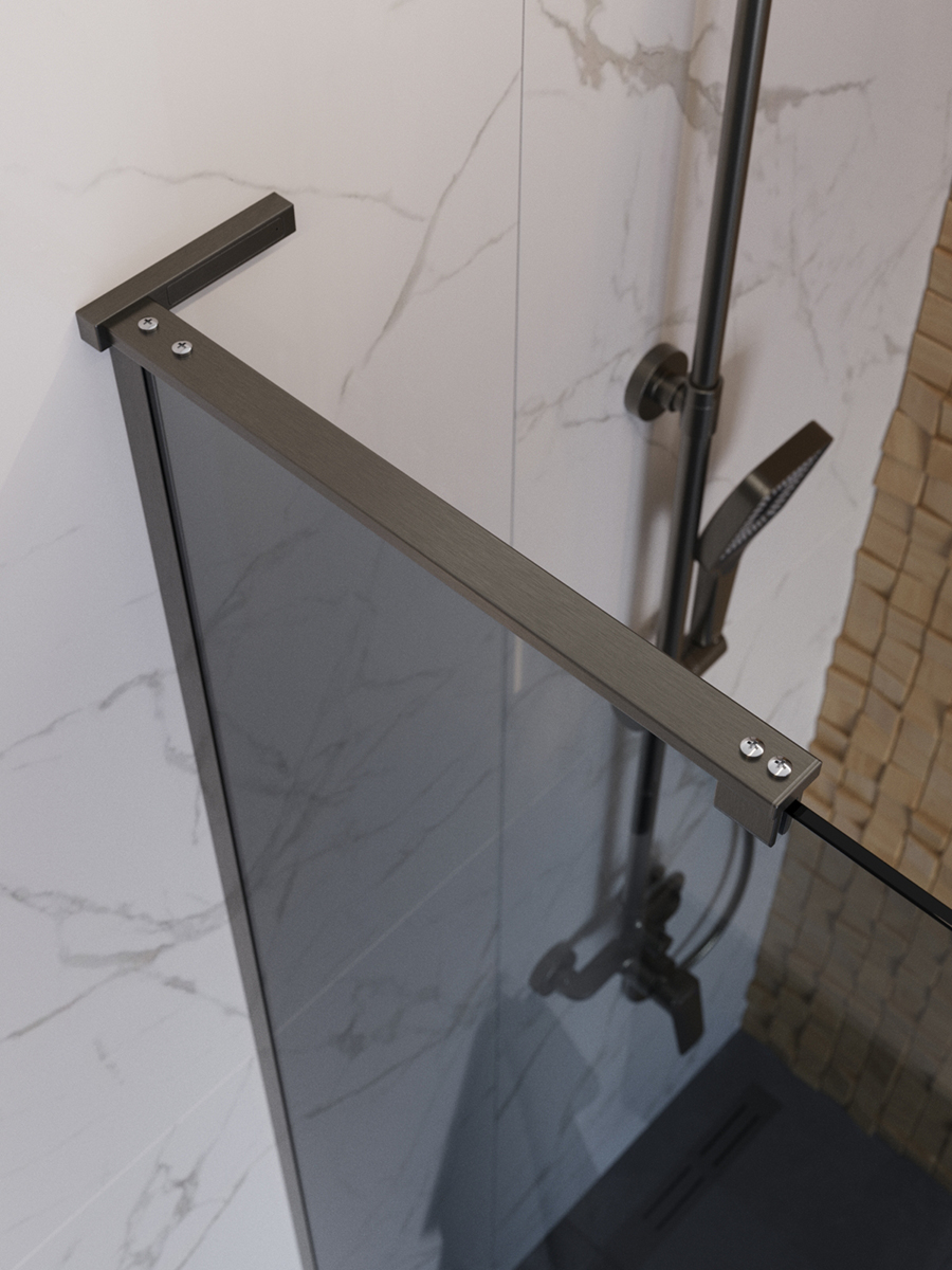 ● L-образный кронштейн сохраняет минималистичный вид и не загромождает пространство, оставаясь практически незаметным в душевой зоне.