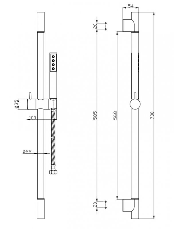 •В комплекте: душевая штанга, душевая лейка из нержавеющей стали, душевой шланг из нержавеющей стали 150 см, держатель душевой лейки