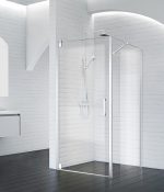 Душевой прямоуголный уголок с распашной дверью в современном, лаконичном дизайне из коллекции MARMI представлен в типовом размере, в цвете хром. Изделие изготавливается из безопасного стекла толщиной 8 мм.