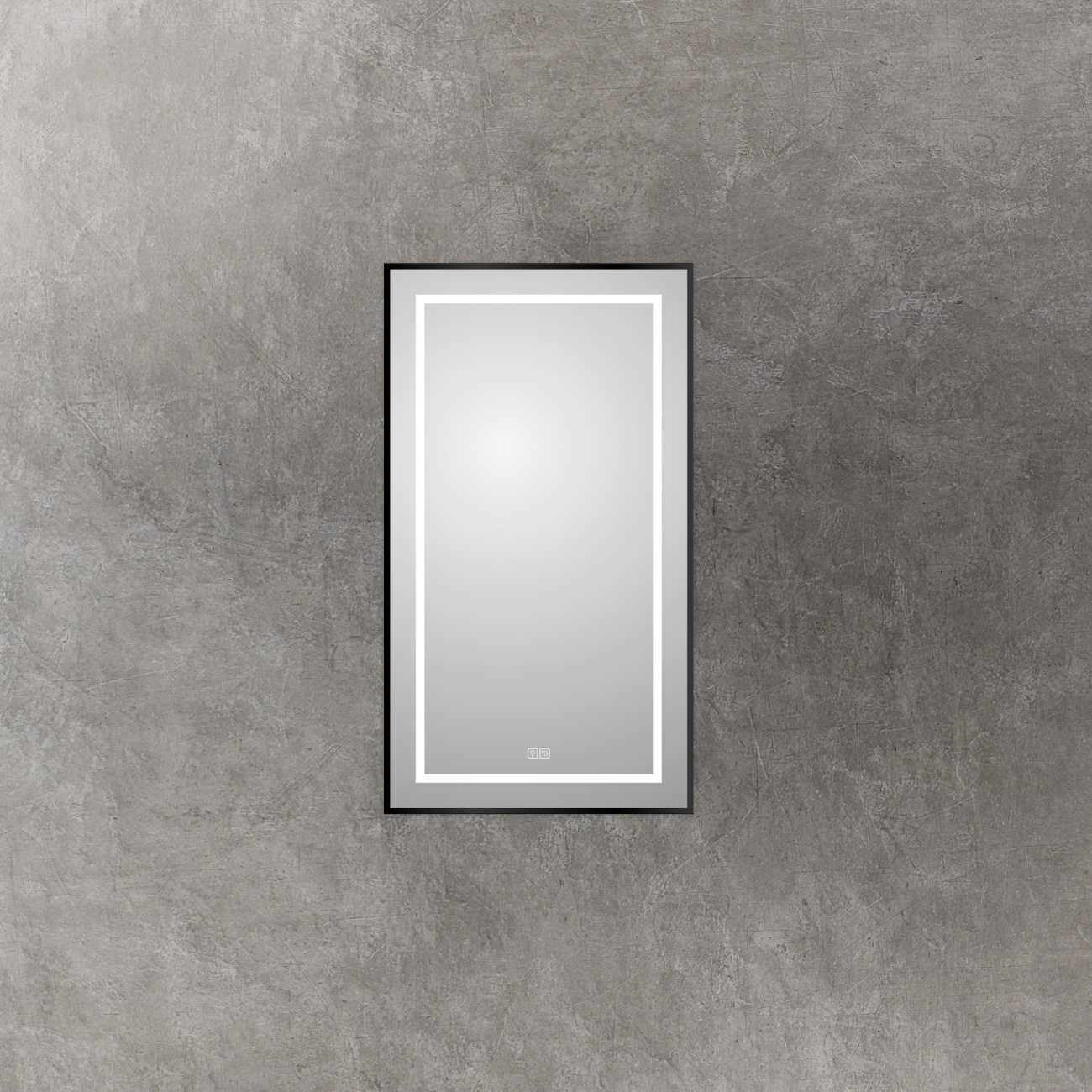Описание Зеркало 100×80 с контурной и направленной подсветкой, с двойными сенсорным выключателем на прикосновение и функцией подогрева. Корпус изделия выполнен