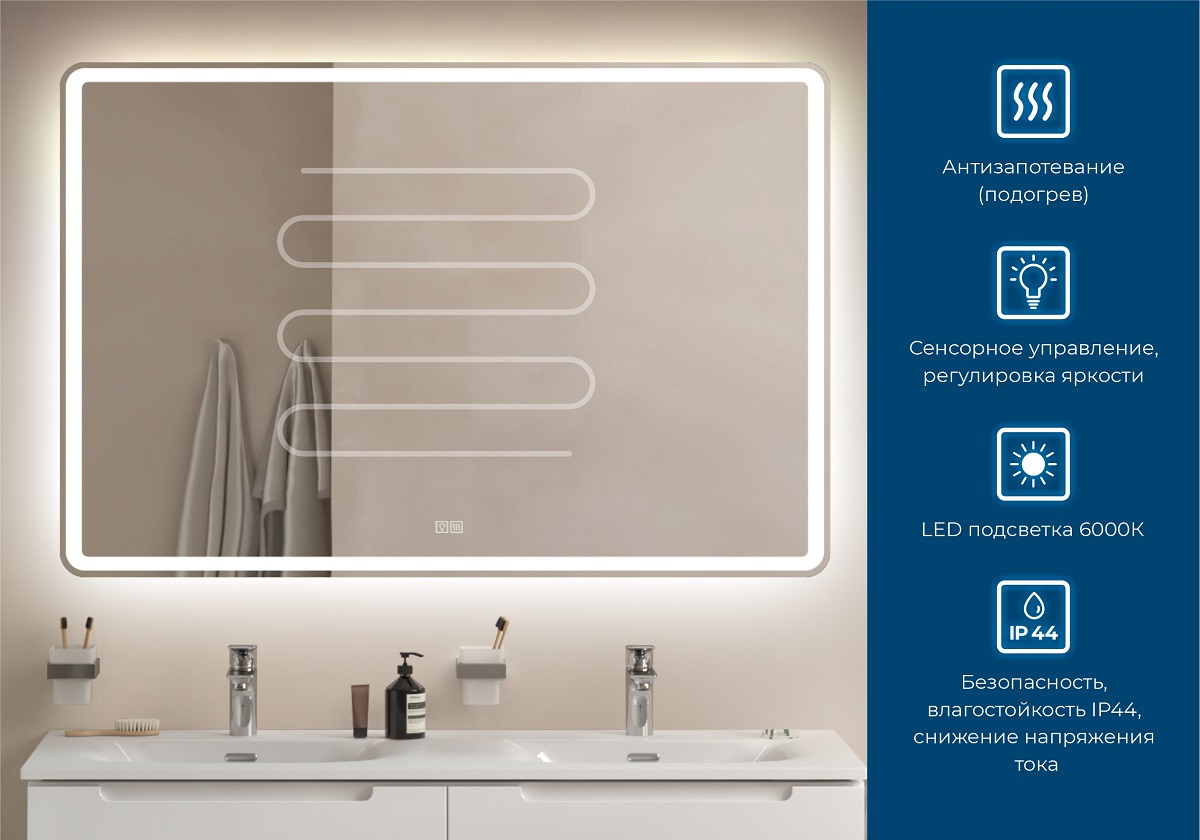 • Расположена по всему периметру зеркала.