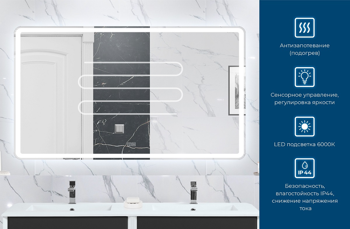 • Предотвращает запотевание зеркала (особенно полезно в ванной после душа).