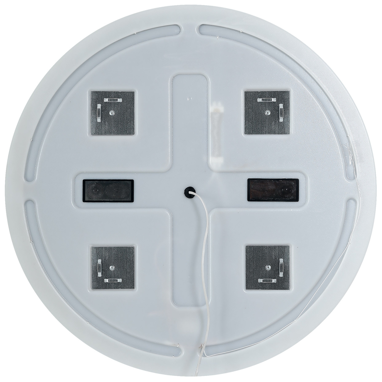 Обратная сторона зеркала защищена пластиковой панелью от попадания воды и влаги.