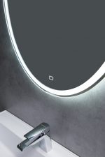 Зеркало с встроенным светильником и сенсорным выключателем.