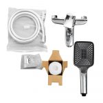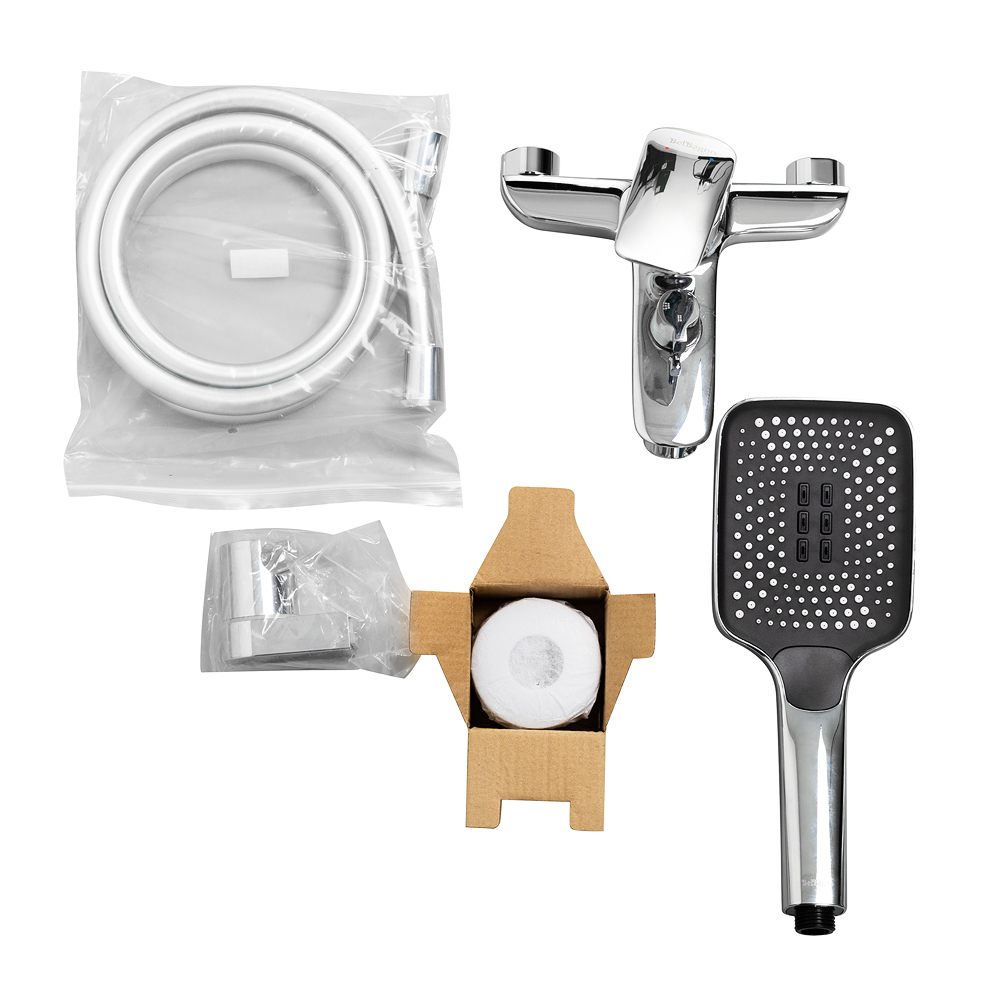 •В комплекте со смесителем: 3-х режимная душевая лейка из ABS-пластика, душевой шланг PVC 150 см, поворотный держатель душевой лейки