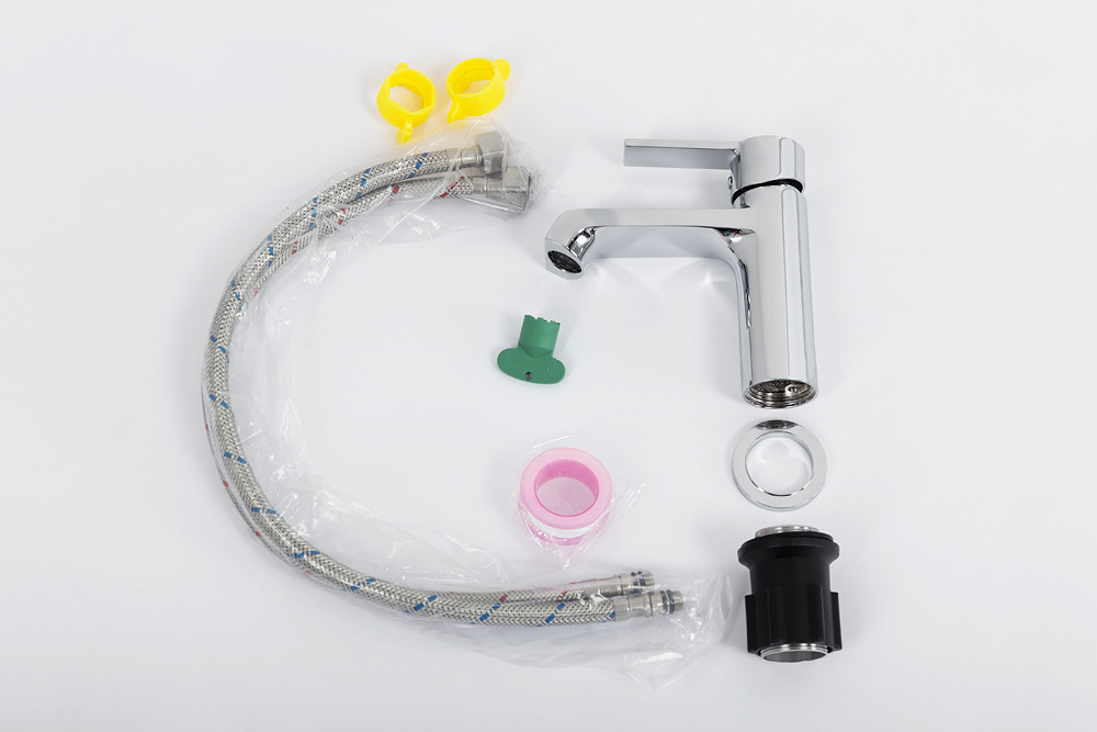 Комплект поставки • Смеситель • Гибкая подводка 60см • Монтажный комплект • Слив-перелив и донный клапан в комплект не