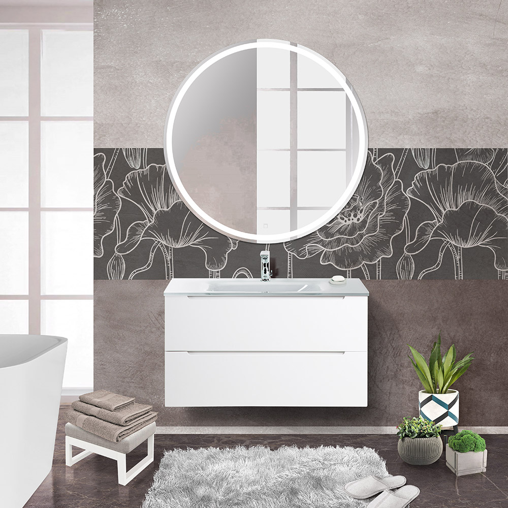 BelBagno — Тумба со стеклянной раковиной подвесная ETNA 90 Bianco Lucido, раковина белая
