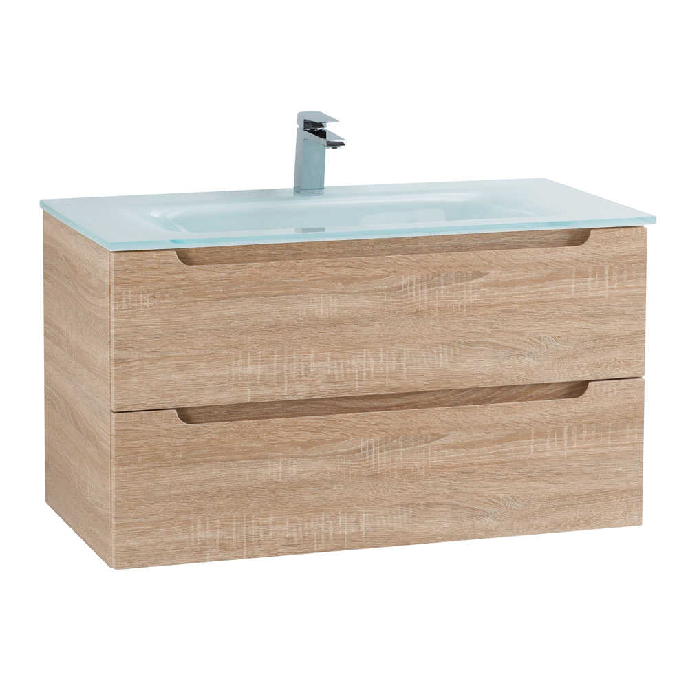 BelBagno — Тумба со стеклянной раковиной подвесная ETNA 90 Rovere Bianco, раковина белая