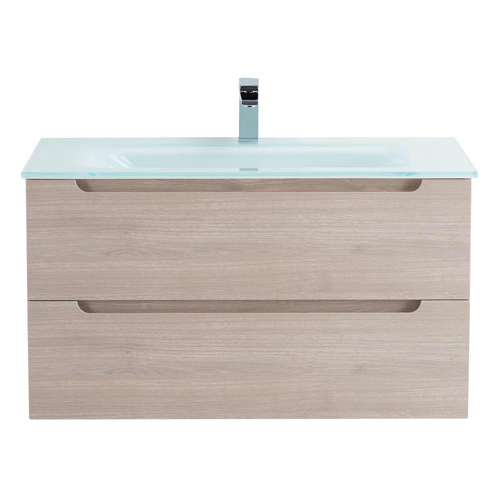 BelBagno — Тумба со стеклянной раковиной подвесная ETNA 80 Rovere Grigio, раковина белая