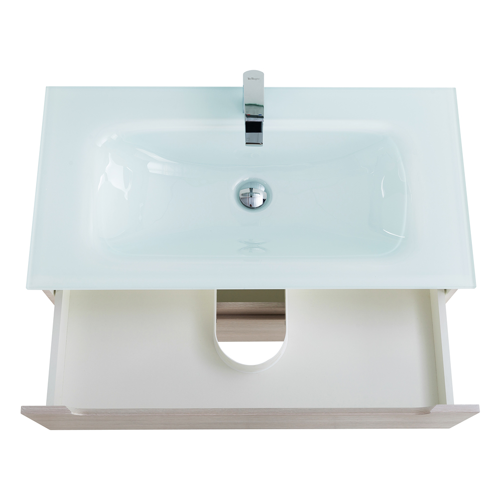 BelBagno - Тумба со стеклянной раковиной подвесная  ETNA 80 Bianco Lucido, раковина белая