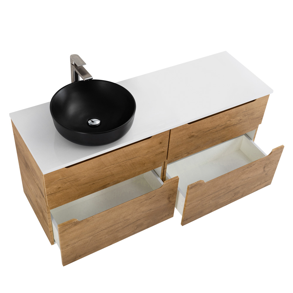 Главная Сантехника Мебель для ванных комнат BelBagno — Тумба со столешницей и накладной раковиной подвесная ETNA-H60 120 Rovere Nature, раковина слева