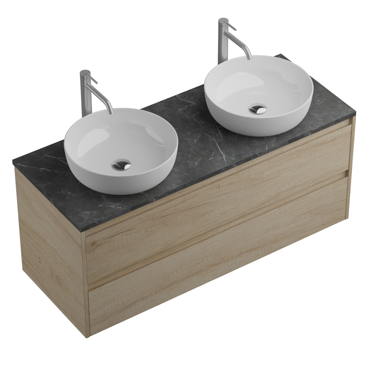 BelBagno — Тумба со столешницей и накладными раковинами подвесная KRAFT 120 Rovere Nebrasca Nature