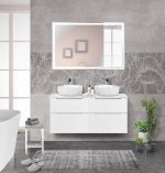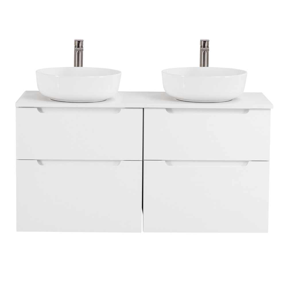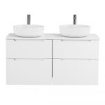 Главная Сантехника Мебель для ванных комнат BelBagno — Тумба со столешницей и накладными раковинами подвесная ETNA-H60 120 Bianco Lucido