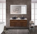 Главная Сантехника Мебель для ванных комнат BelBagno — Тумба со столешницей и накладными раковинами подвесная ETNA-H60 140 Rovere Moro