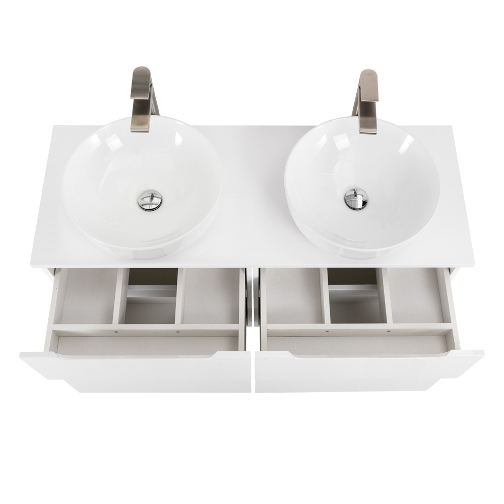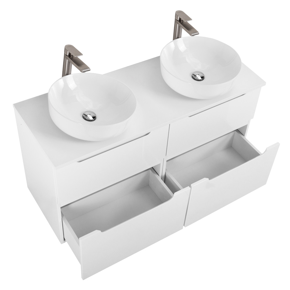 BelBagno — Тумба со столешницей и накладными раковинами подвесная ETNA-H60 140 Bianco Lucido
