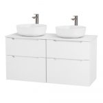 Главная Сантехника Мебель для ванных комнат BelBagno — Тумба со столешницей и накладными раковинами подвесная ETNA-H60 140 Bianco Lucido