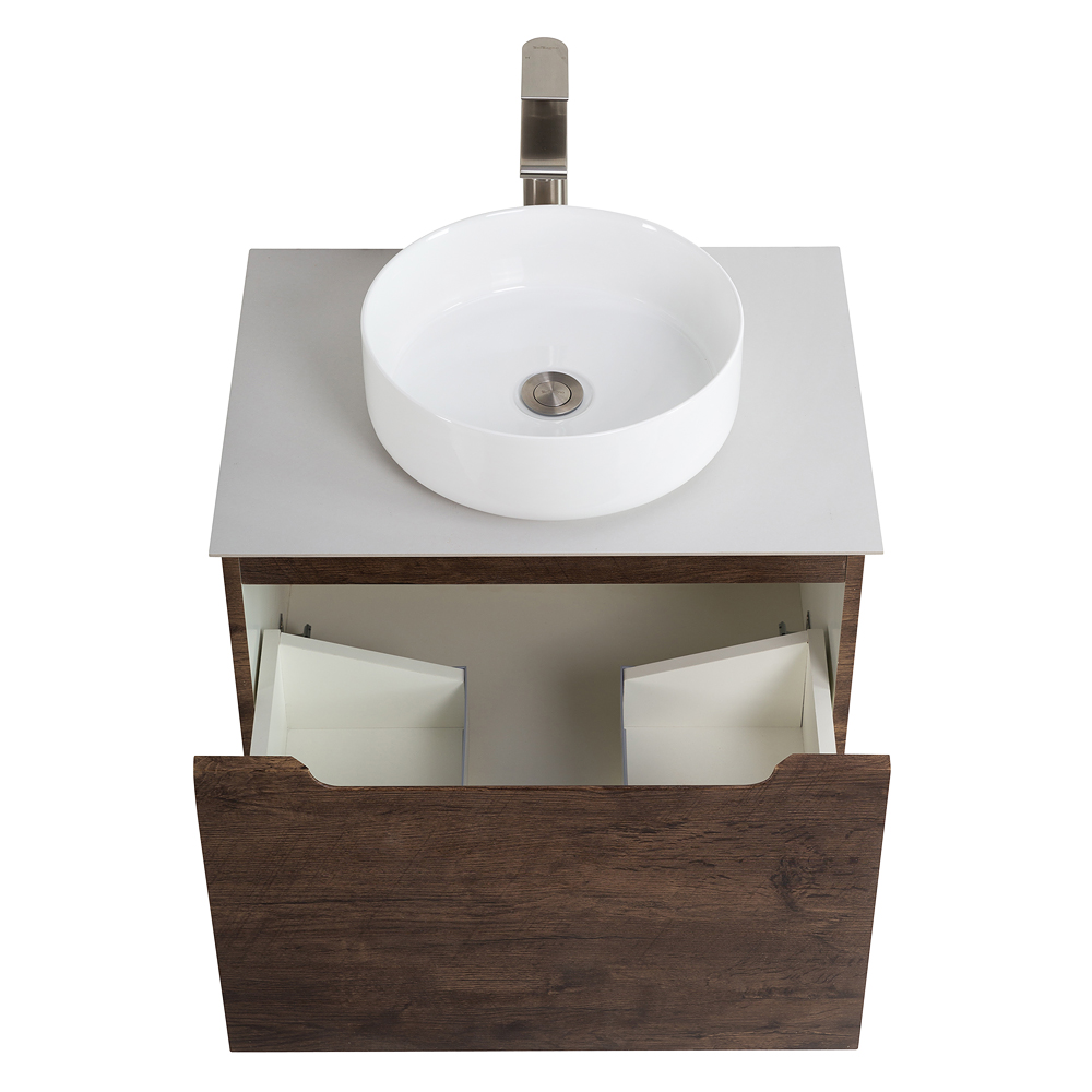 Главная Сантехника Мебель для ванных комнат BelBagno — Тумба со столешницей подвесная с одним ящиком ETNA 60 Rovere Moro, раковина белая