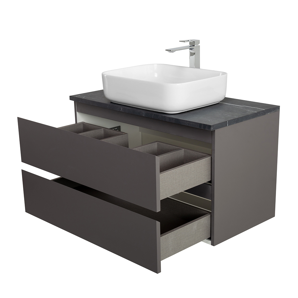 BelBagno — Тумба со столешницей подвесная KRAFT 100 Темно-Серый Матовый, столешница KEP-100-MNO