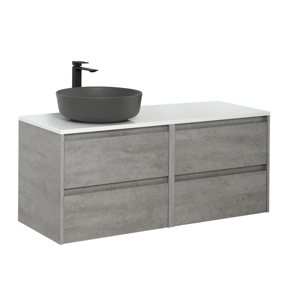 BelBagno — Тумба со столешницей подвесная KRAFT 120 Cemento Grigio, раковина слева