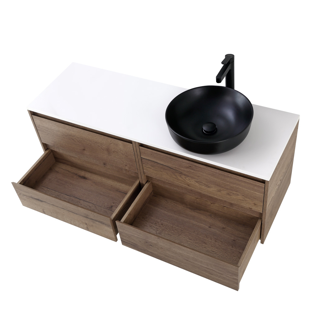 BelBagno — Тумба со столешницей подвесная KRAFT 120 Rovere Tabacco, раковина справа