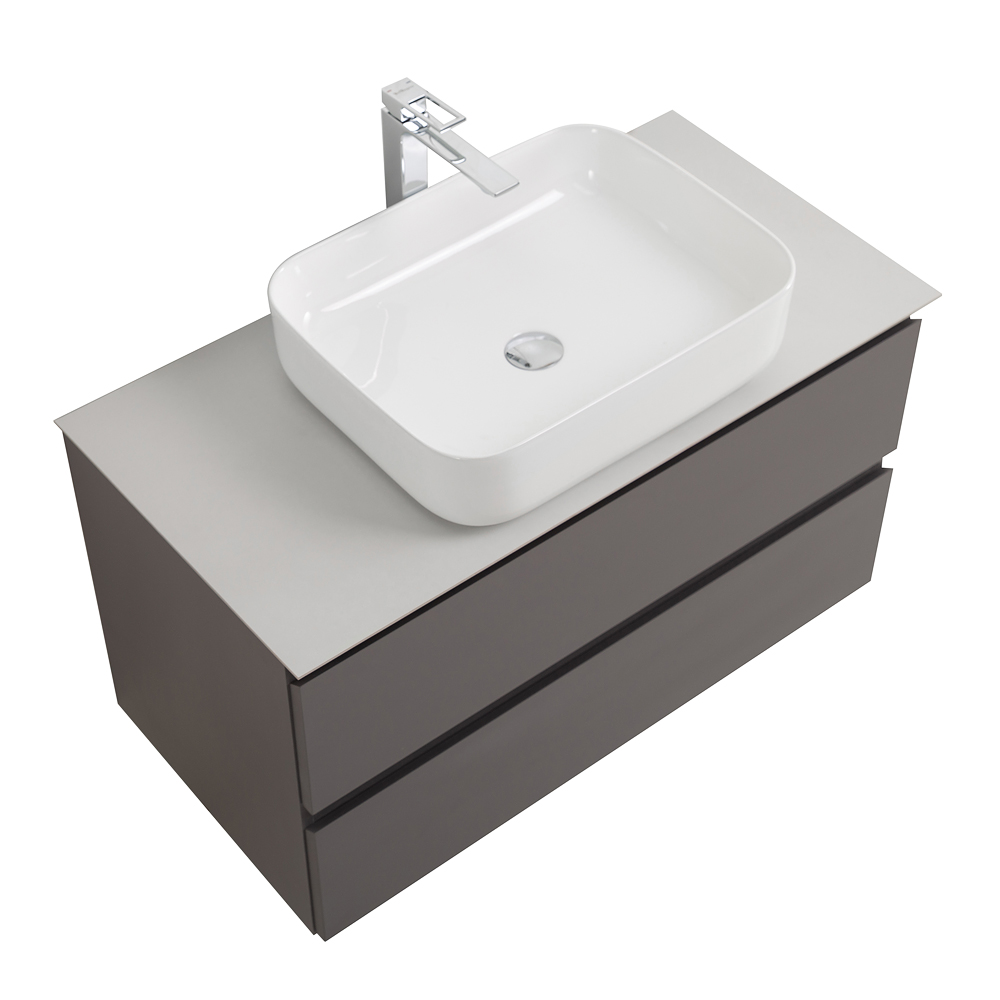 BelBagno — Тумба со столешницей подвесная KRAFT 80 Темно-Серый Матовый, столешница KEP-80-BO