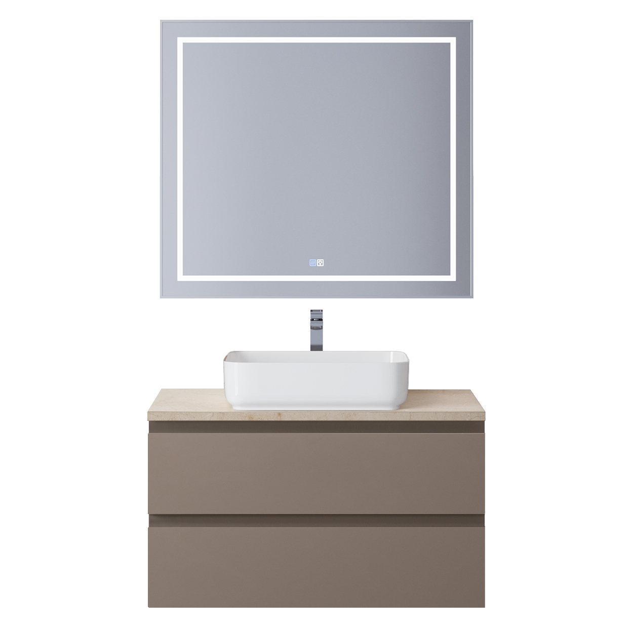 BelBagno — Тумба со столешницей подвесная KRAFT 90 Бежевый матовый, столешница KEP-90-MCO